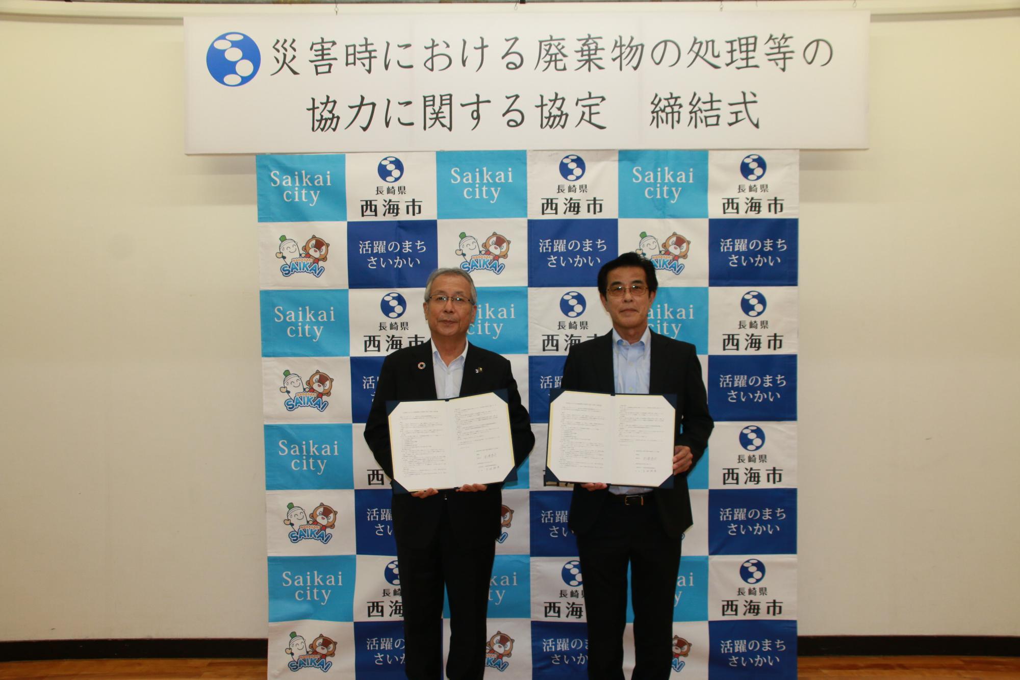 令和3年10月7日に、西海市と長崎県産業資源循環協会との間で「災害時における災害廃棄物の処理等の協力に関する協定」を締結しました。