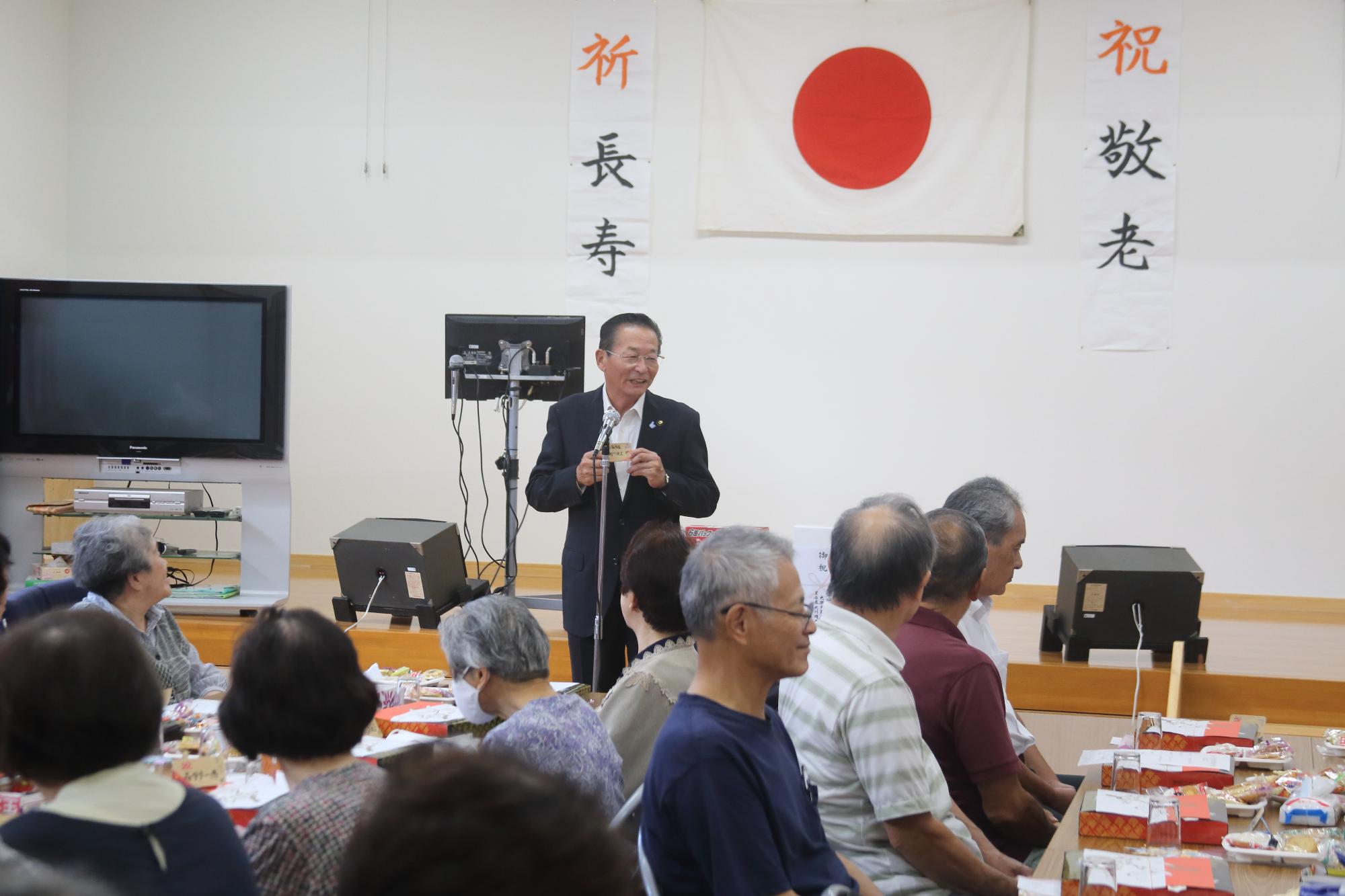 現在は長寿国として、また、豊かな国として、世界で知られておりますが、これもひとえに皆様方が、昭和の激動の時代を乗り越えられ、我が国の発展のためにご尽力されてきたおかげです。