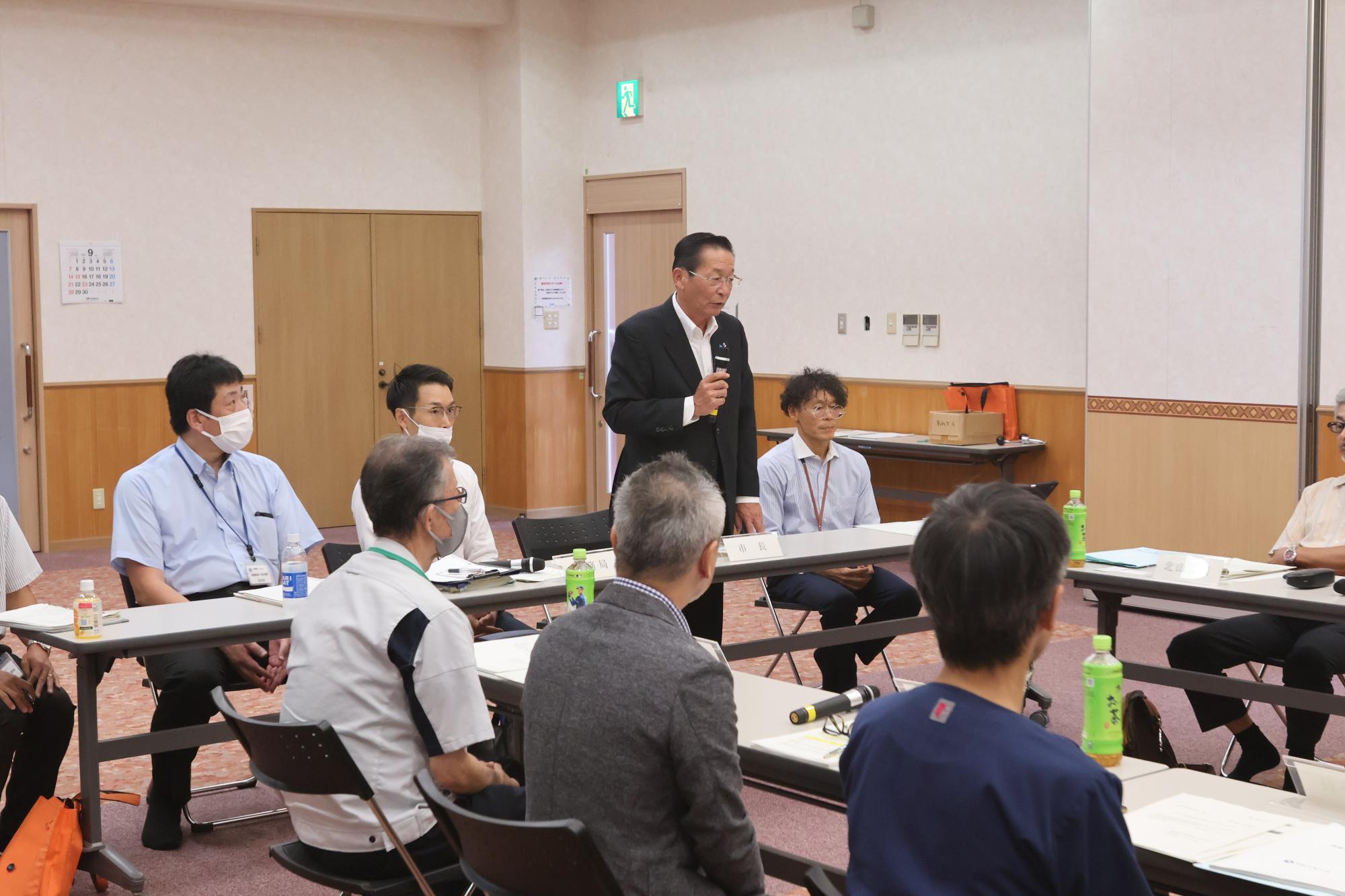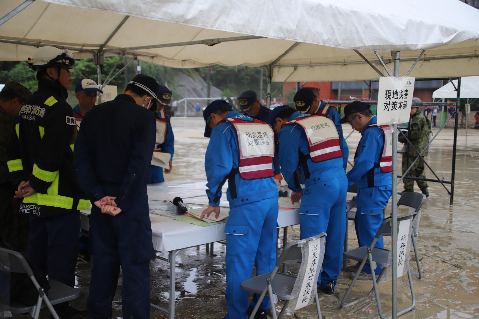 本日の訓練では、関係機関の皆様の道路啓開や倒壊家屋及び被災車両における要救助者の発見から救出までの一連の連携行動をはじめ、水防工法、建物火災消火訓練、ライフラインの応急復旧のほか、地域婦人会や自主防災組織の皆様による避難所開設に伴う非常炊き出し、簡易ベッド等の設置訓練やボランティア受け入れ訓練を拝見し、大変頼もしく感じた次第です。