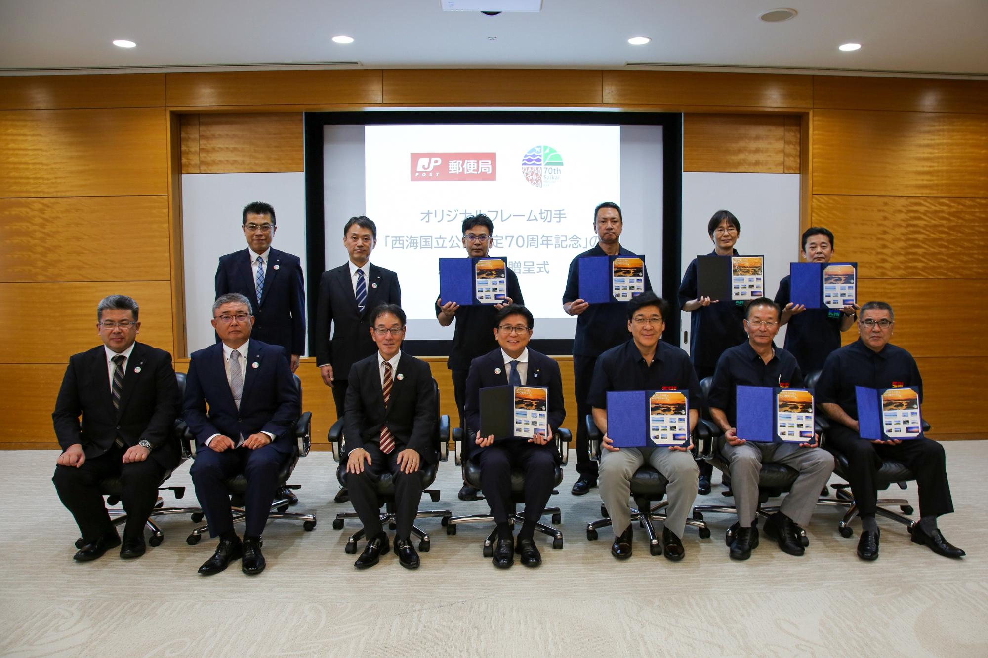 西海国立公園指定70周年記念事業として、『オリジナルフレーム切手「西海国立公園指定70周年記念」の販売開始と贈呈式』および『西海国立公園指定70周年記念動画 オーケストラの祭典での上映会』に出席しました。