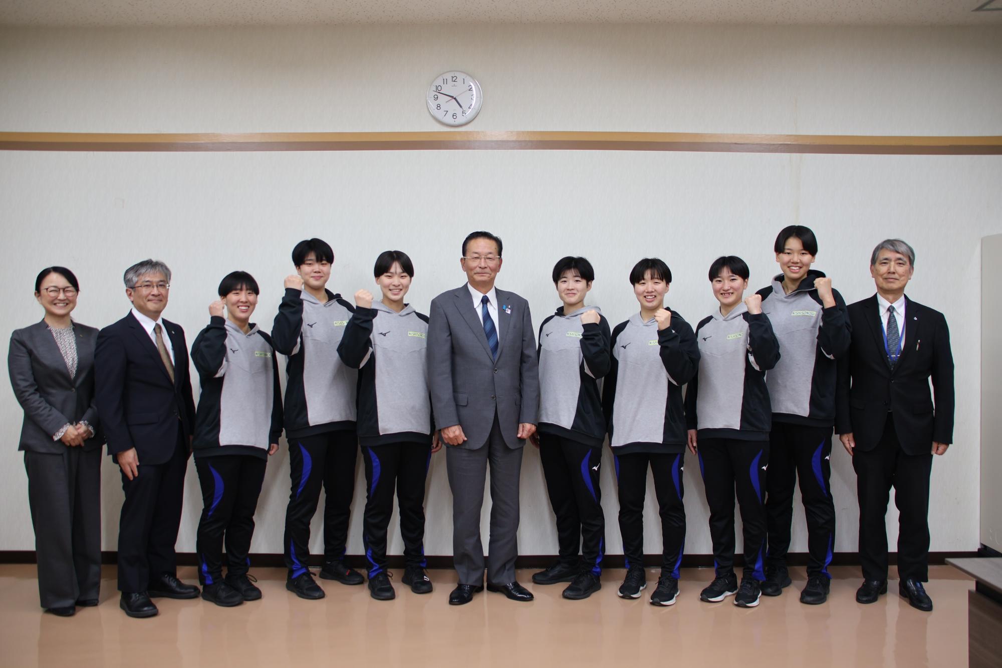 第78回全日本バレーボール高校選手権大会で優勝した西彼杵高等学校女子バレーボール部の皆さんが市役所を訪れ、優勝報告を受けました。