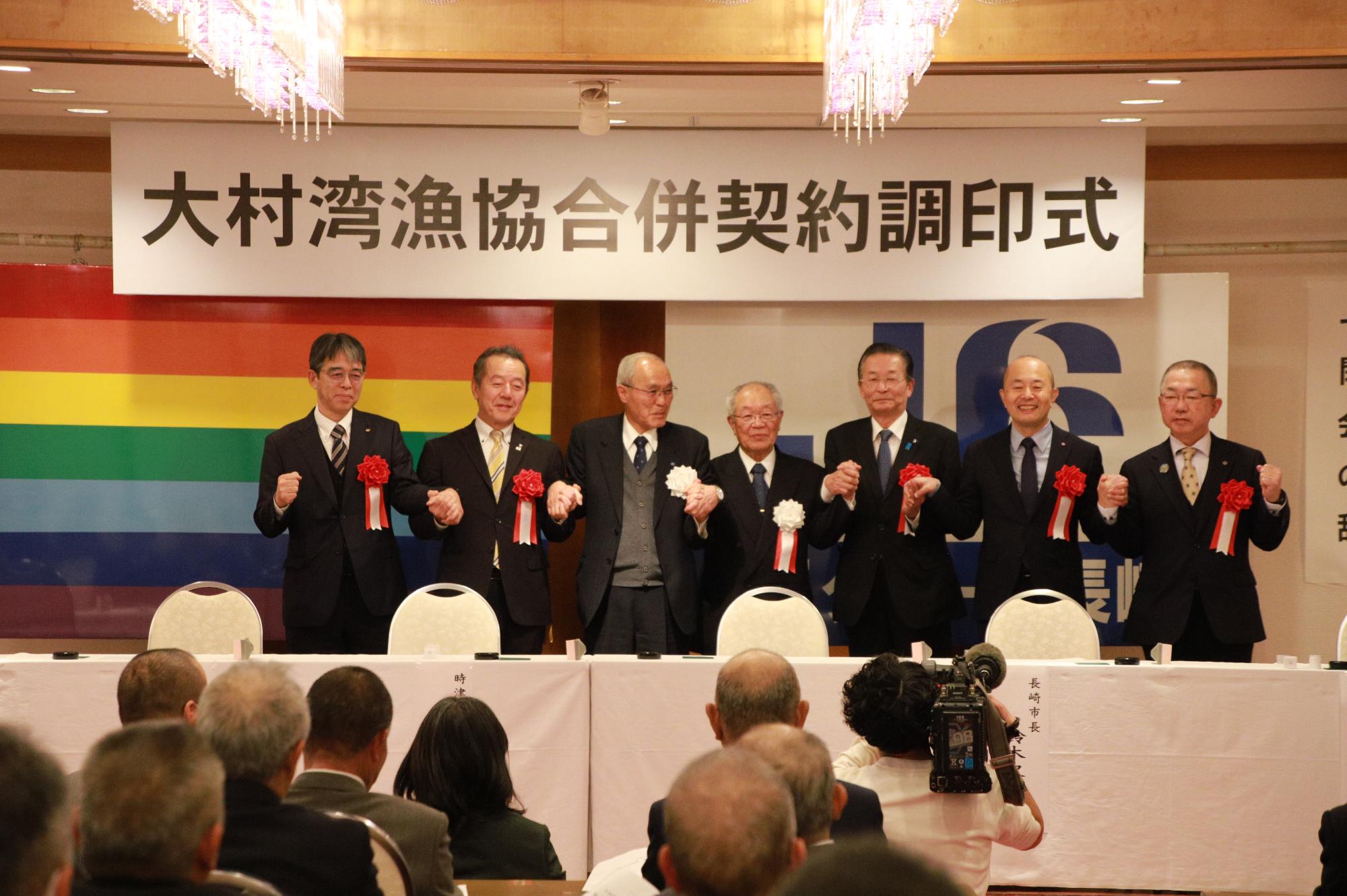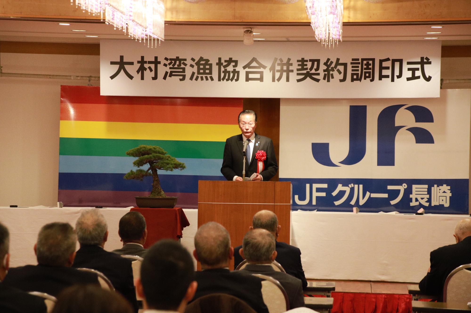 西彼町漁協、大村湾漁協合併調印式に出席しました。