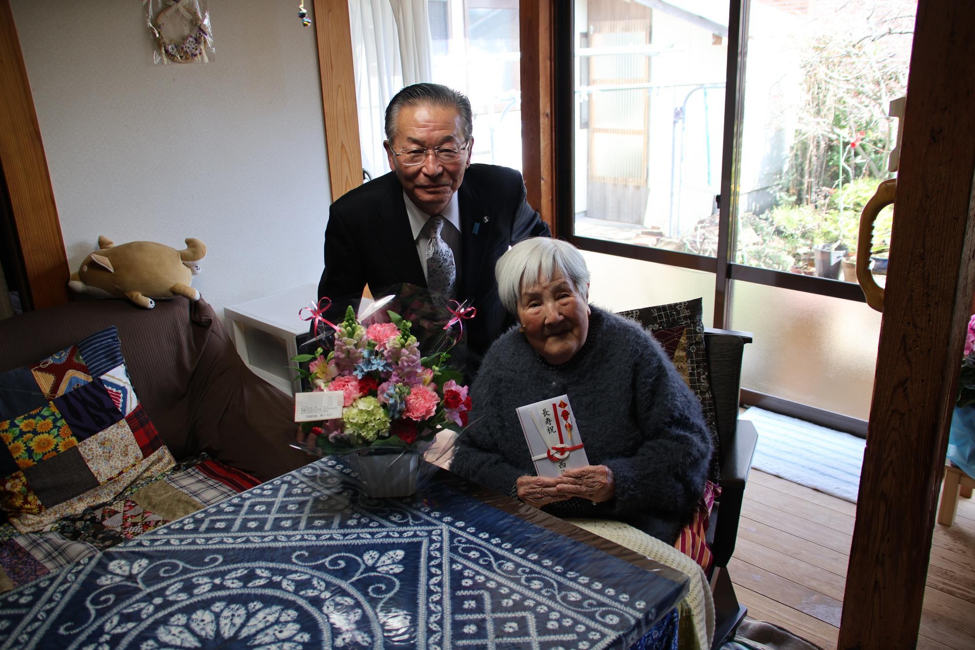 百歳を迎えられた方のお祝いに伺いました。
