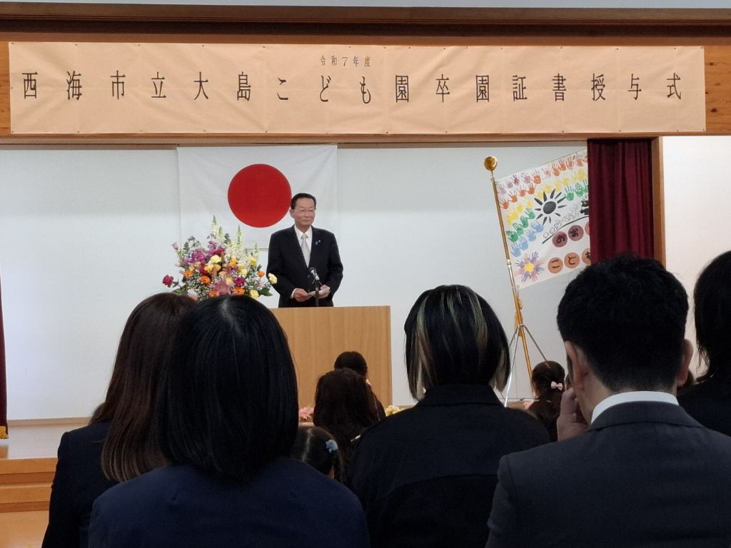 令和7年度西海市立大島こども園卒園証書授与式に出席しました。